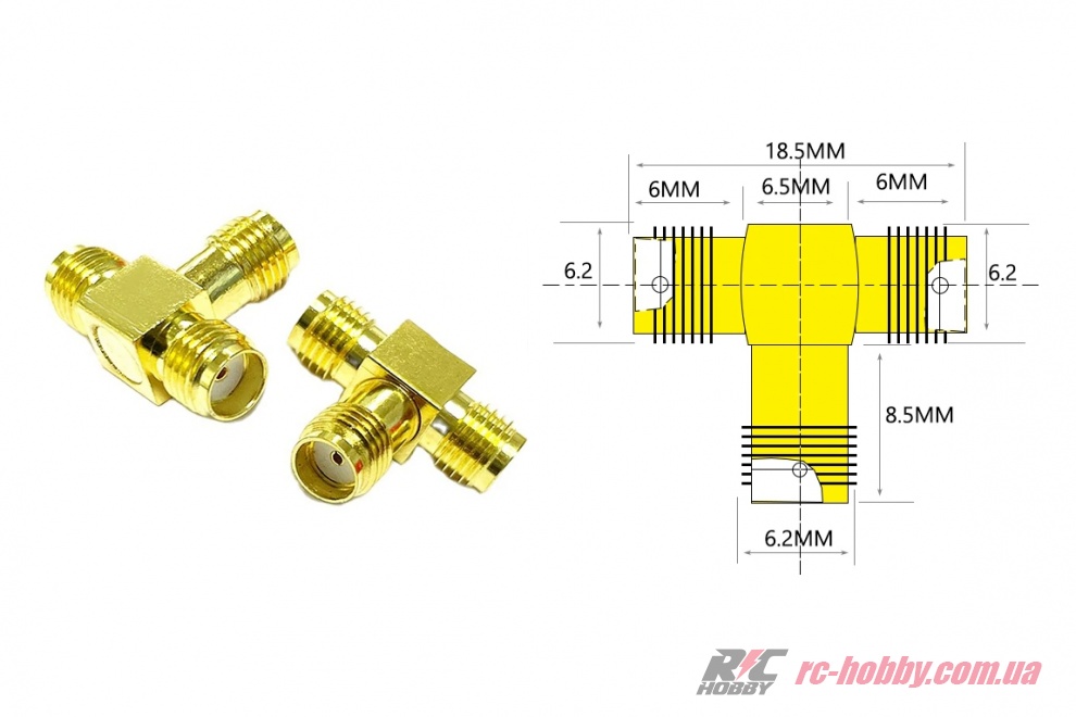 Технічні характеристики Трійник для FPV та радіообладнання (SMA F - SMA F - SMA F)