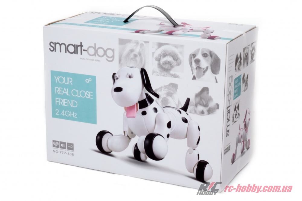 Happy Cow Smart Dog оснащений вбудованими коліщатками для спритного бігу в будь-якому напрямку, а його голова та тулуб рухаються з неймовірною плавністю — від веселих випадів вперед до поворотів навколо себе. Маленький господар зможе навчити собачку трюкам: перевертатися, вставати, лягати чи кружляти, що перетворить гру на справжній цирковий перформанс!