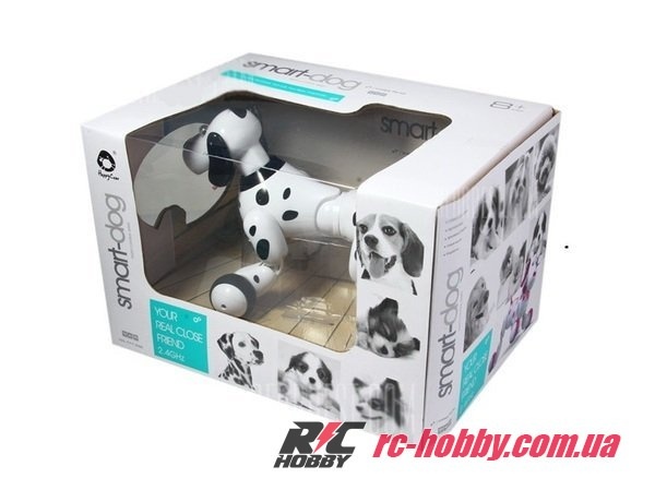 З глянцевим пластиком чорно-білого кольору, Happy Cow Smart Dog виглядає як стильний прототип з мультфільму — його розміри 290х180х185 мм і вага 454 г роблять його зручним для перенесення та гри в будь-якій кімнаті. Міцна конструкція витримає активні забави, а рекомендація для приміщень забезпечить безпеку та комфорт.