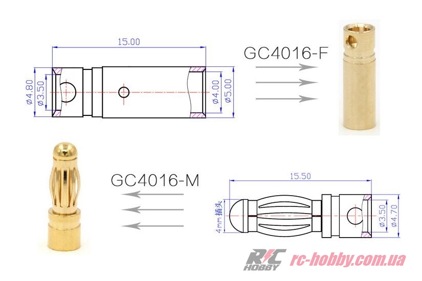 50 шт - Коннекторы AMASS PLUG 4.0MM Male