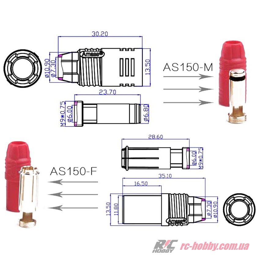 Технічні характеристики Роз'єм AMASS AS150 Red anti-spark протиіскровий пара (AS150-Red)