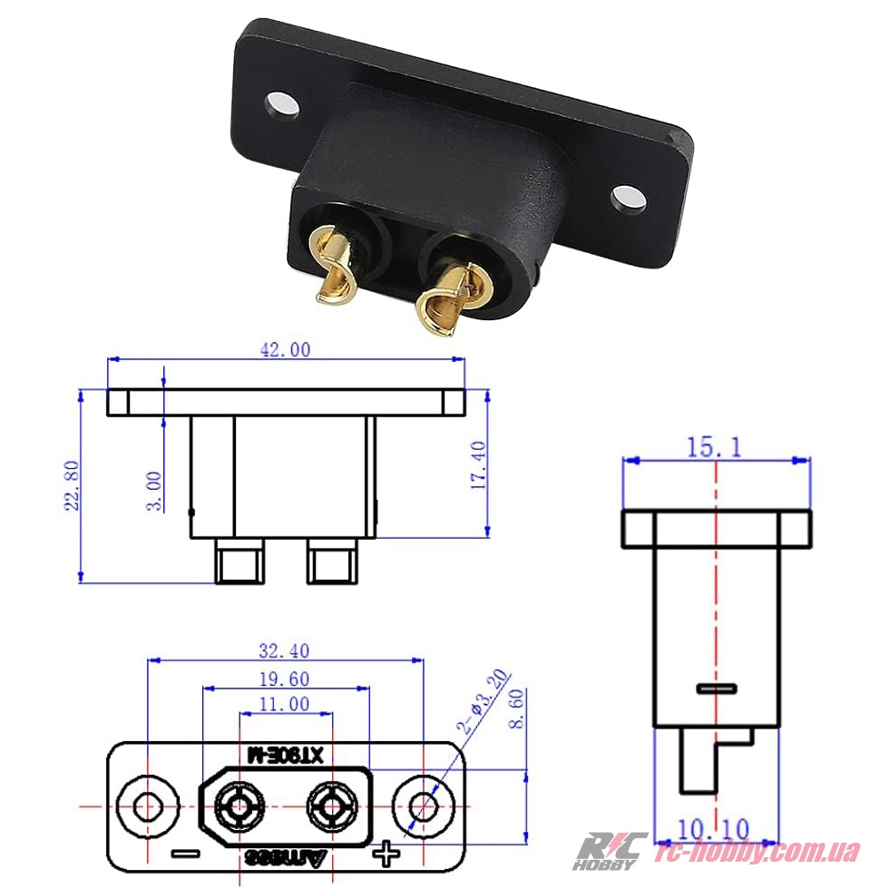 Роз'єм силовий AMASS XT90E-M Male "тато" з кріпленням купити в Україні.