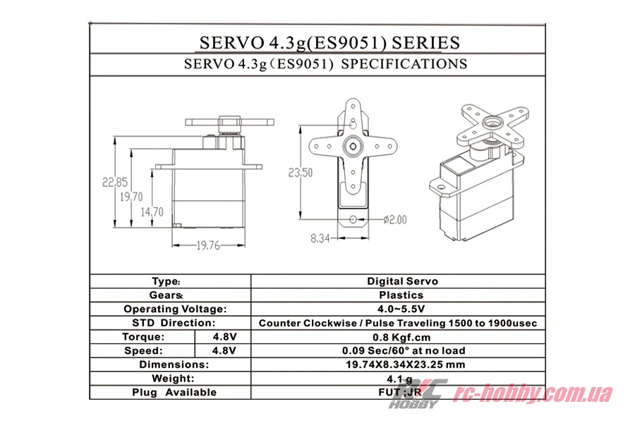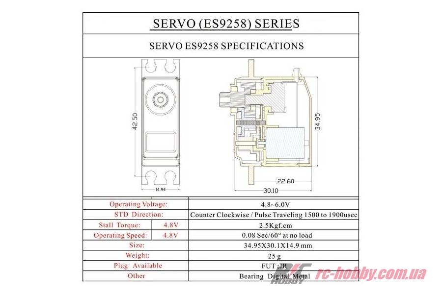 Сервопривід Emax ES9258 25г 2.5кг/0.08сек цифровий
