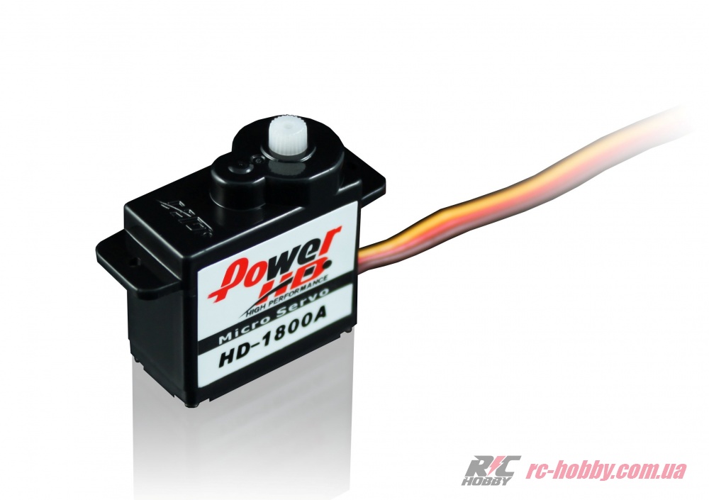 Аналоговий сервопривід (сервомашинка, рульова машинка) Power HD HD-1800A мікророзміру із зусиллям 1кг – 1,3кг. Швидкість 0,11 сек - 0,08 сек.