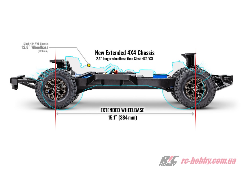 Радіокерування відбувається за допомогою Traxxas TQi 2,4 ГГц з підтримкою стабілізації TSM, що забезпечує впевнений контроль на дистанції до 200 метрів.