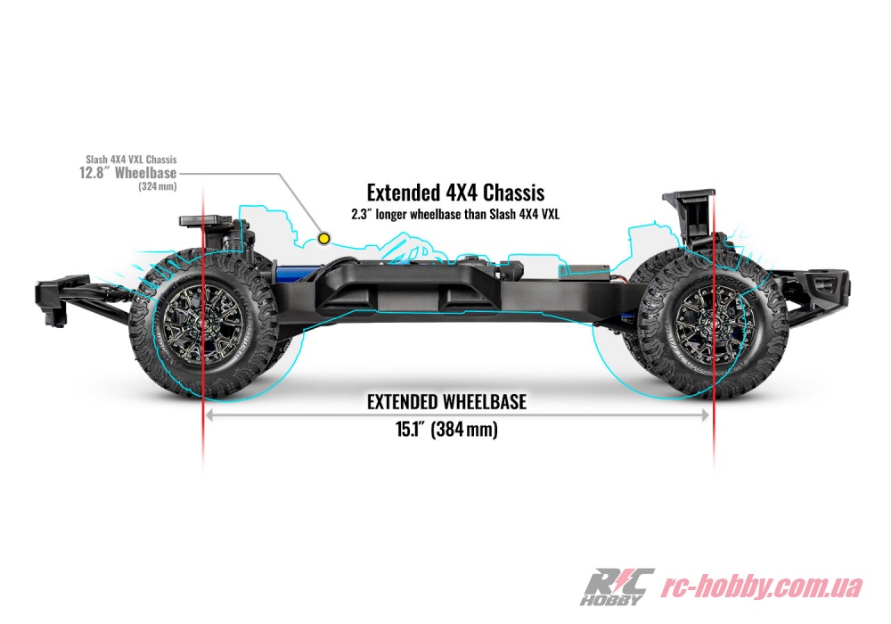 Повний привід 4WD із колісною базою 384 мм і герметичними диференціалами із загартованої сталі забезпечує чіпке зчеплення на бруді, гравії чи піску.