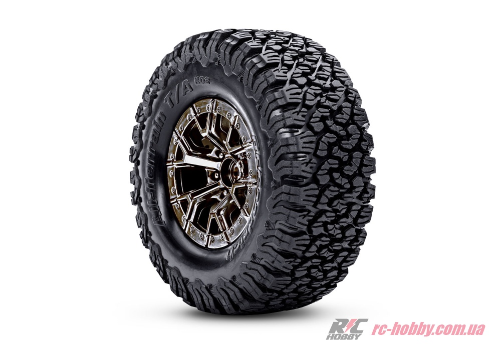 Шестиспицеві диски 2,2/3,0" Split-Spoke Black Chrome із шинами BFGoodrich All-Terrain T/A KO2 4,5"x1,9" гризуть будь-яку поверхню.