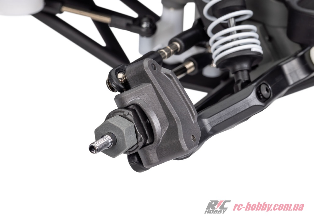 Одношвидкісна трансмісія з передатним числом 2,72 (головна передача 12,58) і задній привід 2WD із колісною базою 324 мм дарують вибуховий старт і маневреність для ефектних заносів.