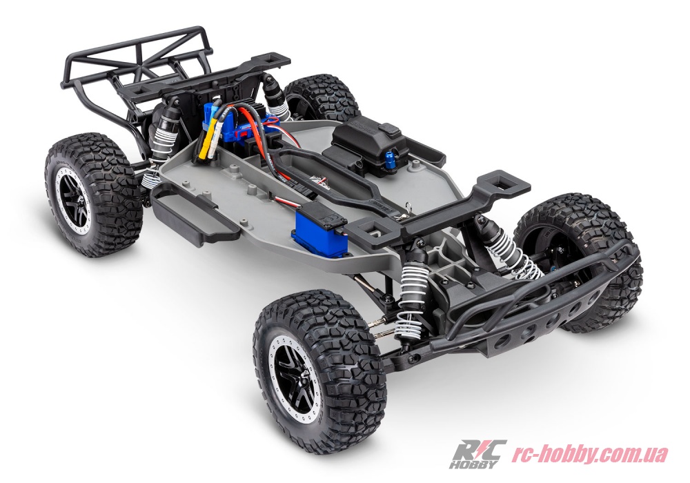 SLASH VXL RTR (Ready-To-Run) чекає лише вашої команди — додайте акумулятор (NiMH 7,2-8,4В 3000-5000 мАг або LiPO 7,4-11,1В 4000-7600 мАг) і зарядний пристрій Traxxas Charger, і вперед, підкорювати траси!