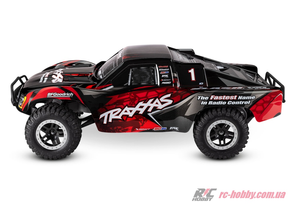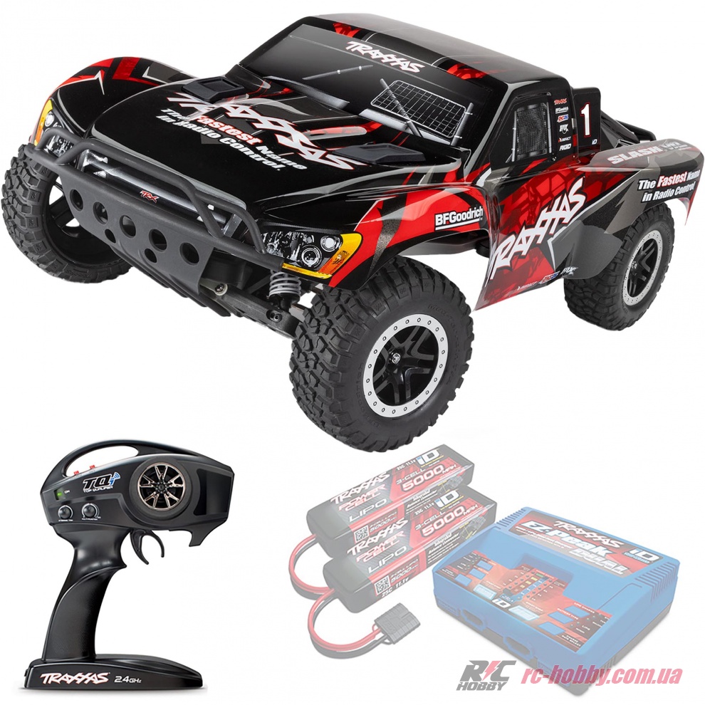 SLASH VXL RTR (Ready-To-Run) чекає лише вашої команди — додайте акумулятор (NiMH 7,2-8,4В 3000-5000 мАг або LiPO 7,4-11,1В 4000-7600 мАг) і зарядний пристрій Traxxas Charger, і вперед, підкорювати траси!