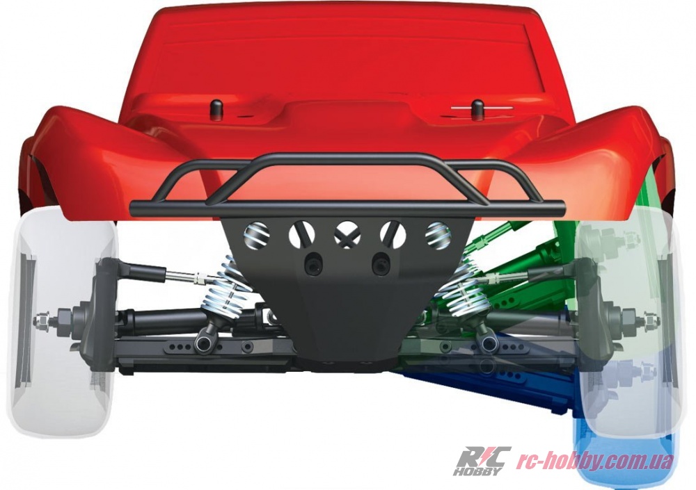 Повний привід і міцні маслонаповнені амортизатори служать гарантією максимальної курсової стійкості моделі на трасі.