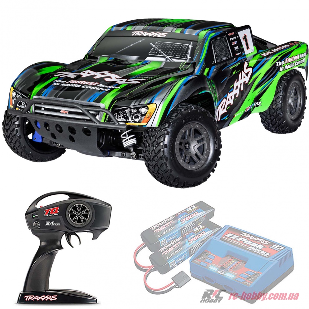 SLASH 4X4 в комплектації RTR чекає лише вашого сигналу — додайте акумулятор (NiMH 7,2-8,4В 3000-5000 мАг або LiPO 7,4В 3000-7600 мАг) і зарядний пристрій Traxxas Charger, наприклад, EZ-Peak Live (2971), і вперед, до слави!