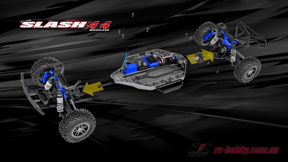 SLASH 4X4 — це втілення шоткорс-агресії: розміри 568x296x193 мм, вага 2410 г і кліренс 72 мм дозволяють йому ковтати нерівності й стрибати з трамплінів.