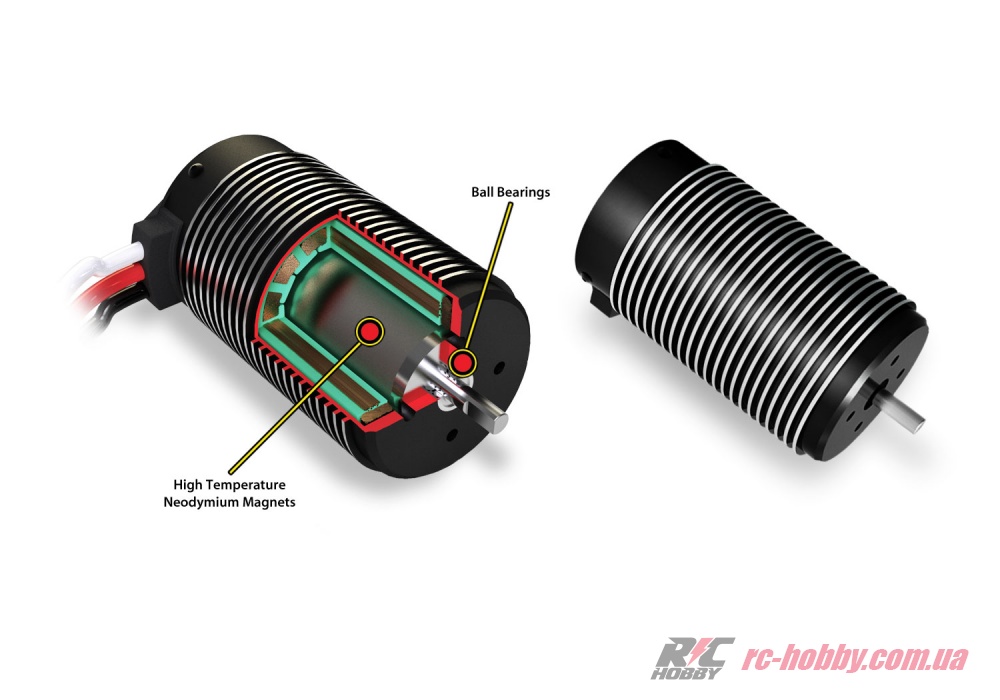 Запорука приголомшливих швидкісних характеристик машини на радіокеруванні – безколекторний двигун Brushless Big Block, 1650 KV.