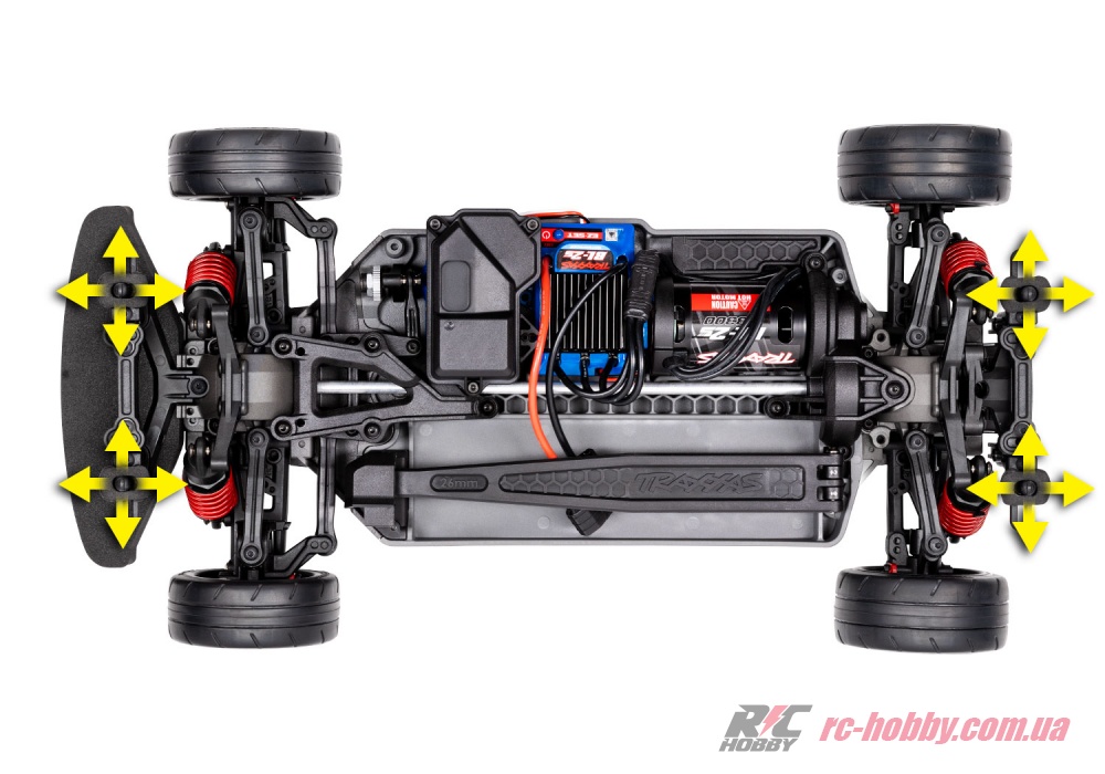 Унікальна система регульованих кріплень дозволяє встановити будь-який кузов із шириною 200 мм, від класичних суперкарів до агресивних дрифтових болідів.