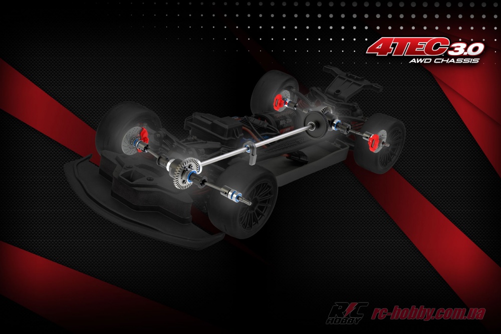 Одношвидкісна трансмісія з прямим приводом і передатним числом 11,38 забезпечує миттєвий відгук, а повний привід 4WD із колісною базою 272 мм гарантує ідеальне зчеплення на шосейних трасах.