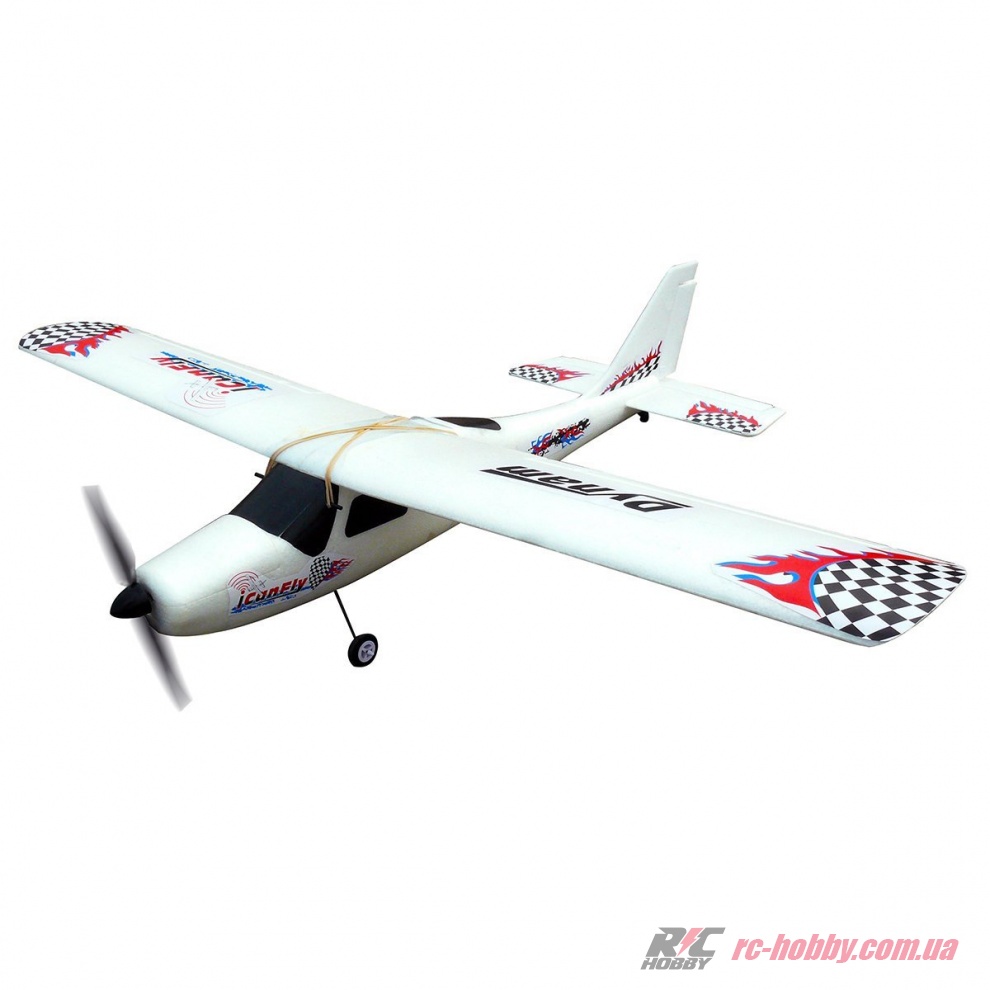 Благодаря облегченной конструкции авиамодели, самолет взлетает практически с места. Простота взлета, стабильность полета и безопасность посадки обеспечивается за счет фиксированного шасси и верхнего расположения крыла.