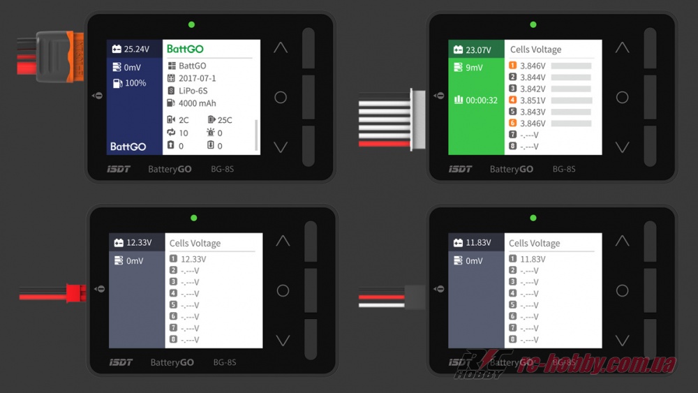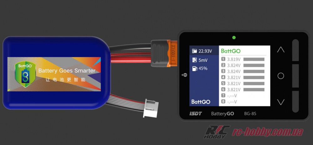 Тестер ISDT BG-8S показує точну та розширену інформацію про стан вашої батареї. Прилад підтримує новітню технологію BattGO, проте працює зі звичайними АКБ у стандартному режимі.