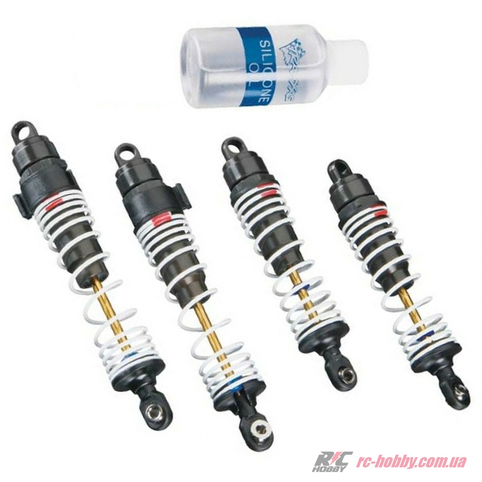 Амортизатори Траксас Big Bore виготовлені з твердого анодованого алюмінію T6 з покриттям з PTFE, поставляються у зборі з валами та посиленими пружинами з TiN (передній та задній) 4шт.
