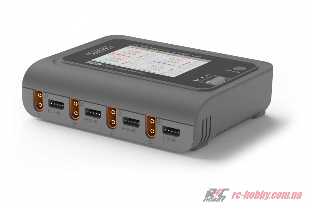 Новий 4-канальний зарядний пристрій AC/DC від ToolkitRC працює від внутрішнього джерела змінного струму потужністю 100 Вт або постійного струму потужністю до 200 Вт!