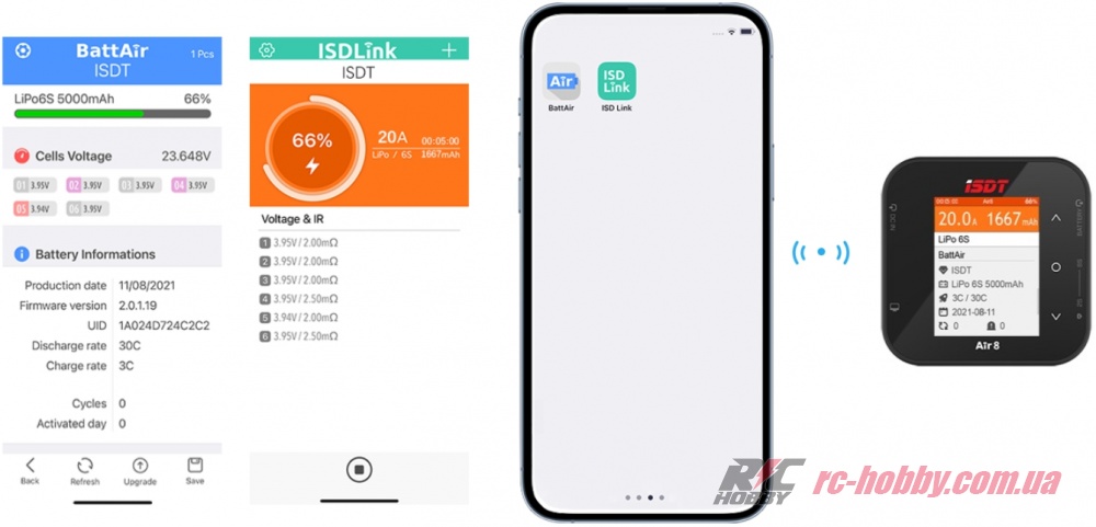 Зарядний пристрій Air8 дозволяє моніторити процес заряджання акумуляторів через встановлений на ваш смартфон додаток ISD Link — всі параметри доступні на екрані вашого мобільного ґаджета!