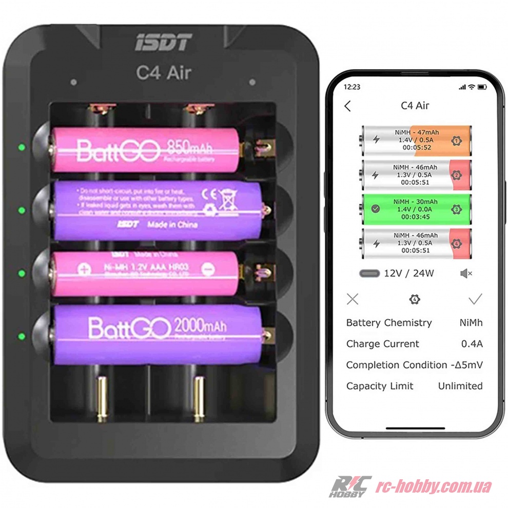 Встановіть на ваш смартфон спеціально розроблений застосунок для ISDT C4 AIR — і ви зможете наочно спостерігати за процесом зарядки ваших АКБ.