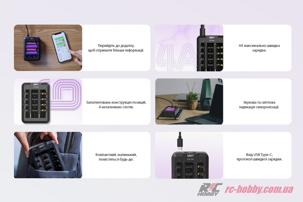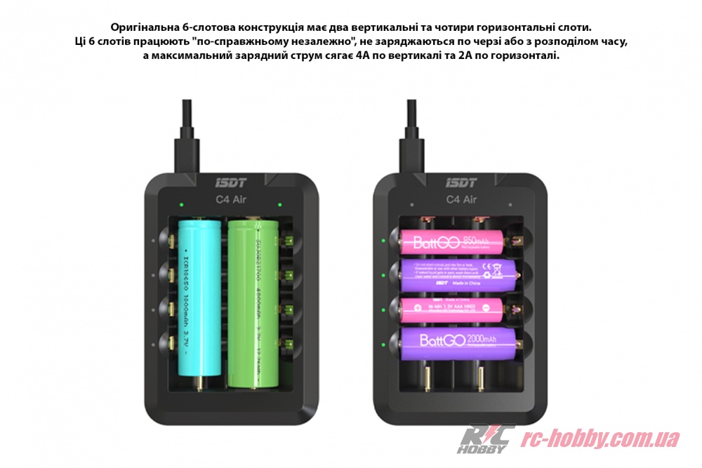 Розумна зарядка ISDT C4 AIR працює з наступними типами батарей: