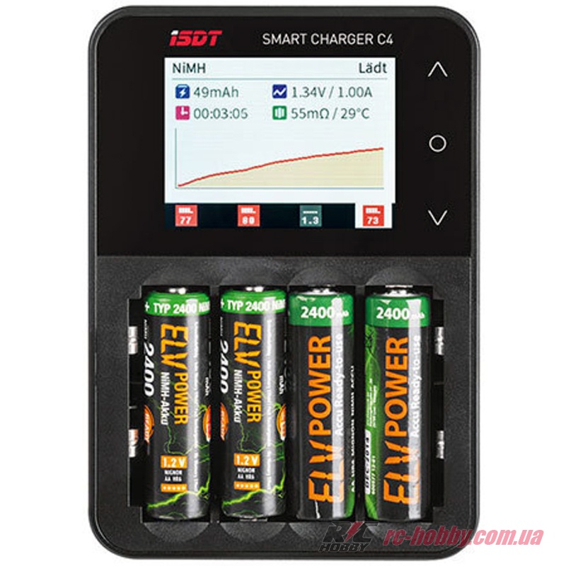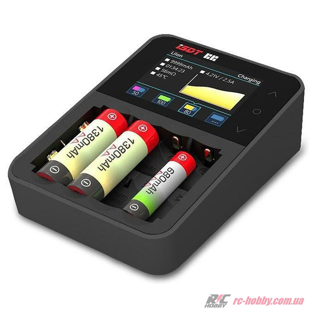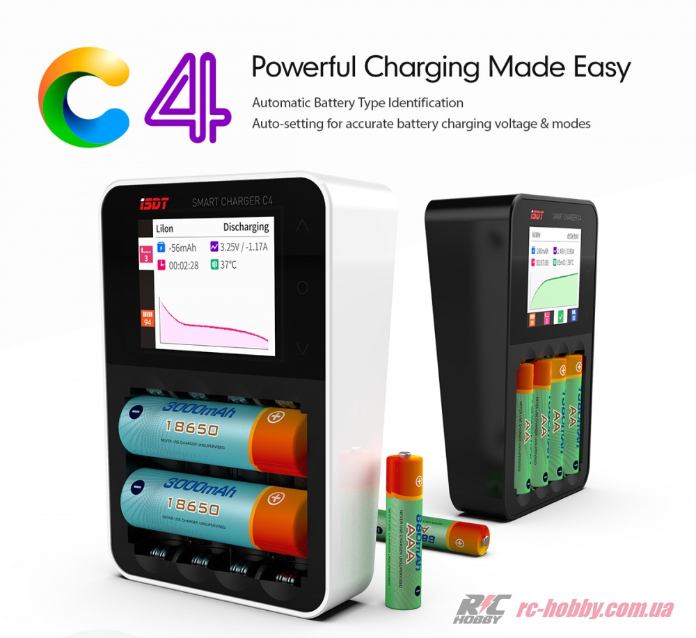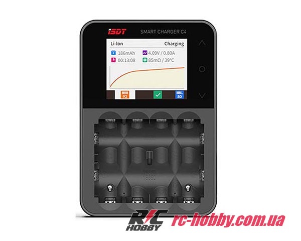 ISDT C4 – зарядка нового покоління, розрахована для роботи з циліндричними АКБ, яка вміє не лише швидко заряджати, але й відновлювати і навіть визначати якість та ємність акумулятора (доступна функція «Аналіз»).