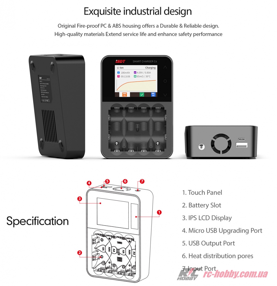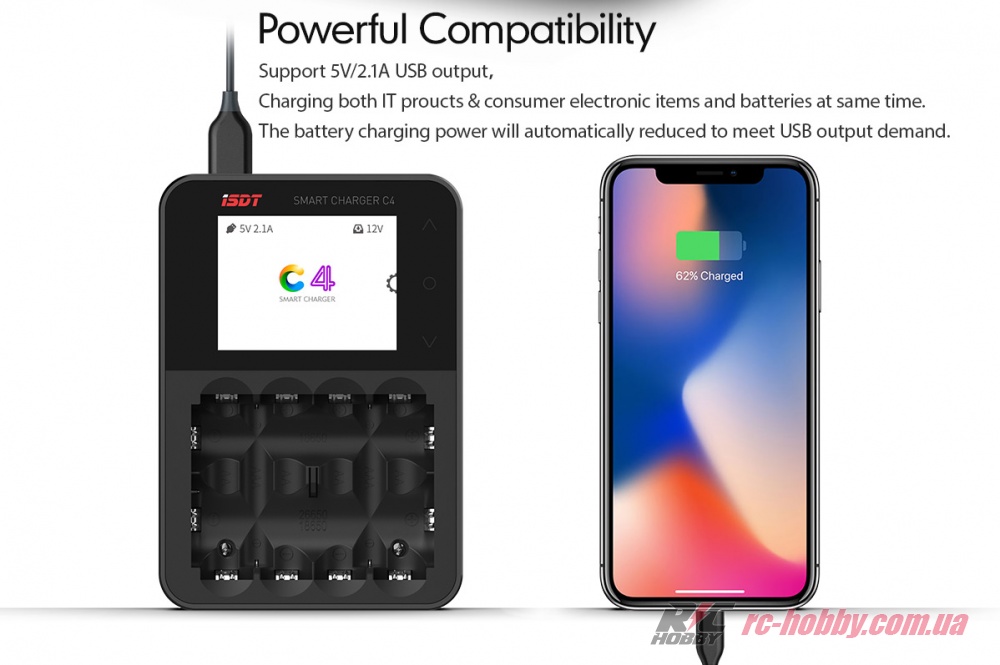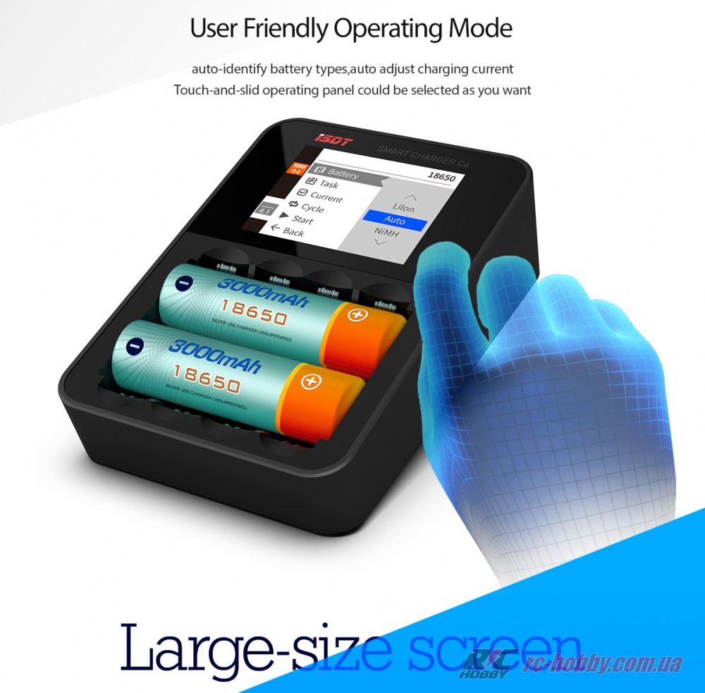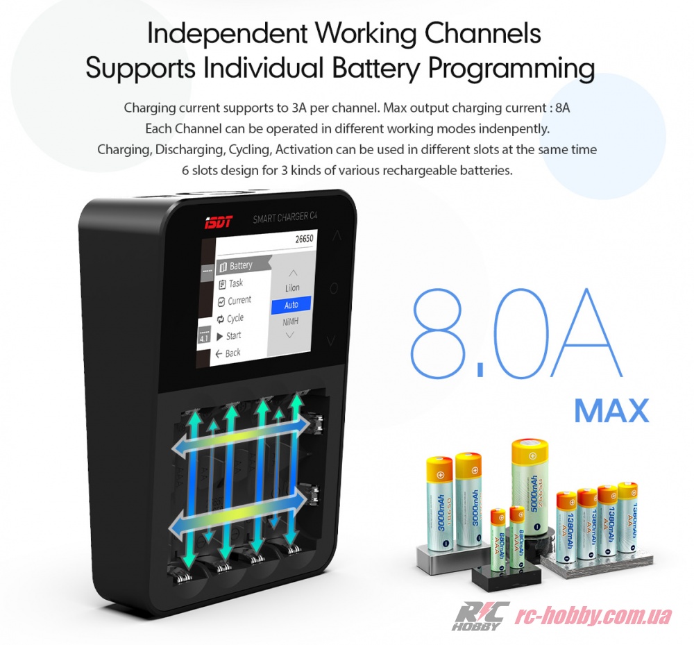 ISDT C4 – зарядка нового покоління, розрахована для роботи з циліндричними АКБ, яка вміє не лише швидко заряджати, але й відновлювати і навіть визначати якість та ємність акумулятора (доступна функція «Аналіз»).