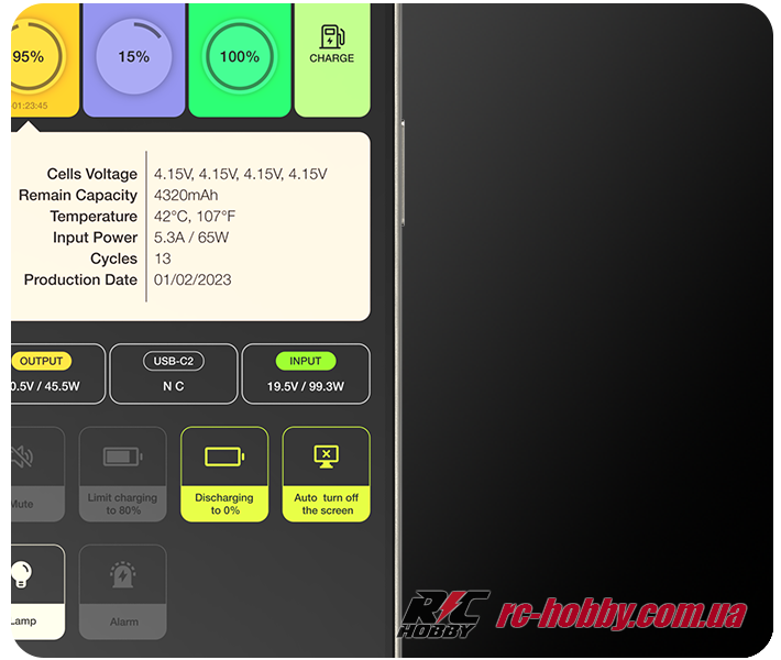 Цей хаб — справжній мозковий центр: балансування, розрядка, збирання даних про акумулятори й точний контроль через РК-дисплей із інтелектуальним вимірювачем потужності.