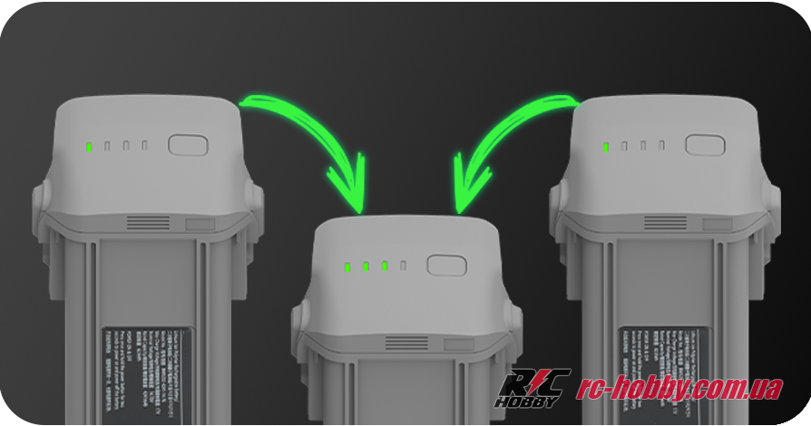 Режими 60% (зберігання) або 100% (політ) і підтримка OTA-оновлень забезпечують гнучкість і сумісність із майбутніми батареями DJI Air 3/3S (BWX233-4241-14.76):
