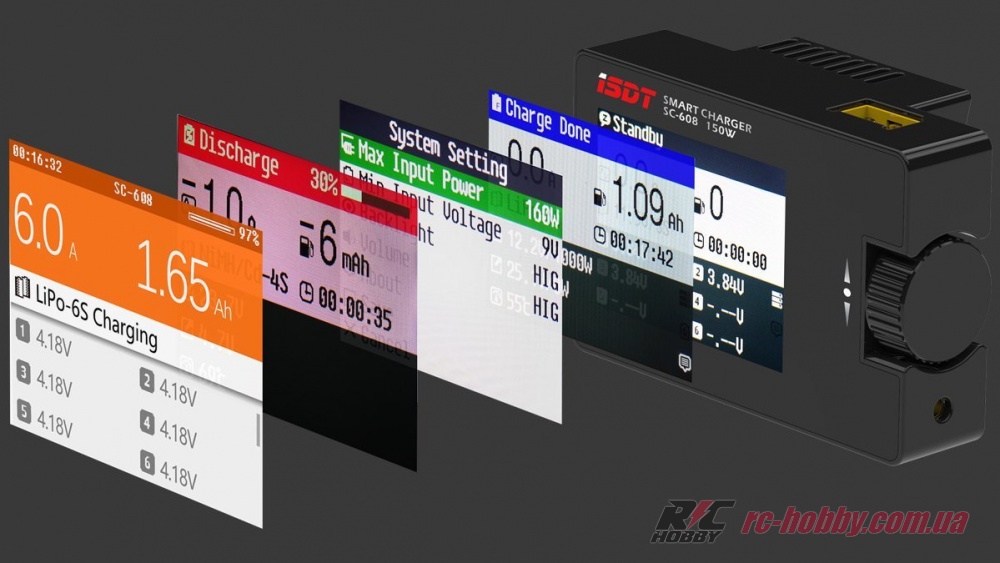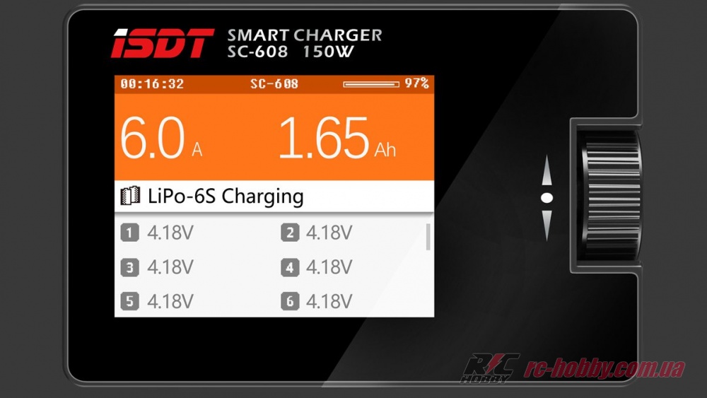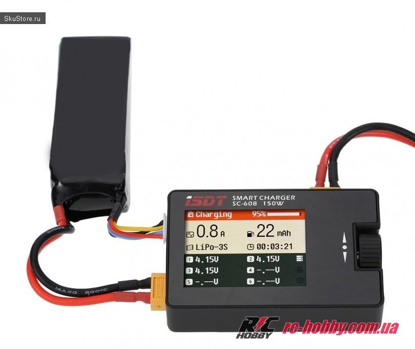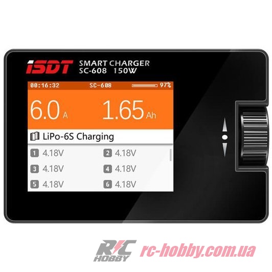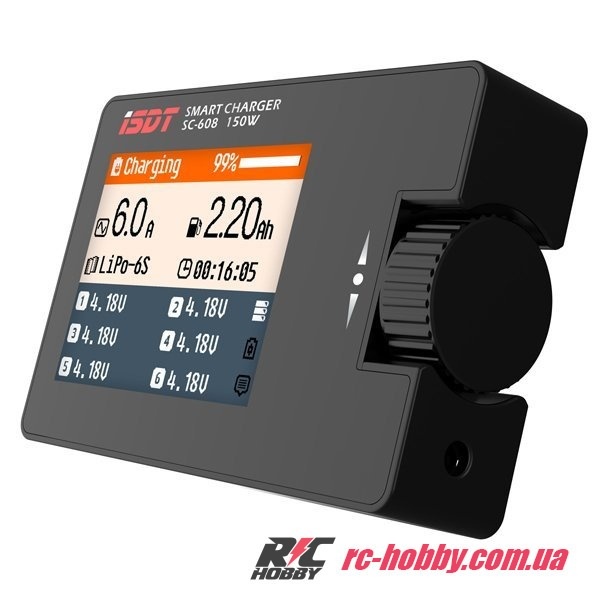 Зарядное устройство ISDT SC-608 – это аппаратура для зарядки разного типа батарей (LiFe / LiPo / Lilon / NiMH / LiHv / Pb / Cd) с количеством банок до шести (6S).
