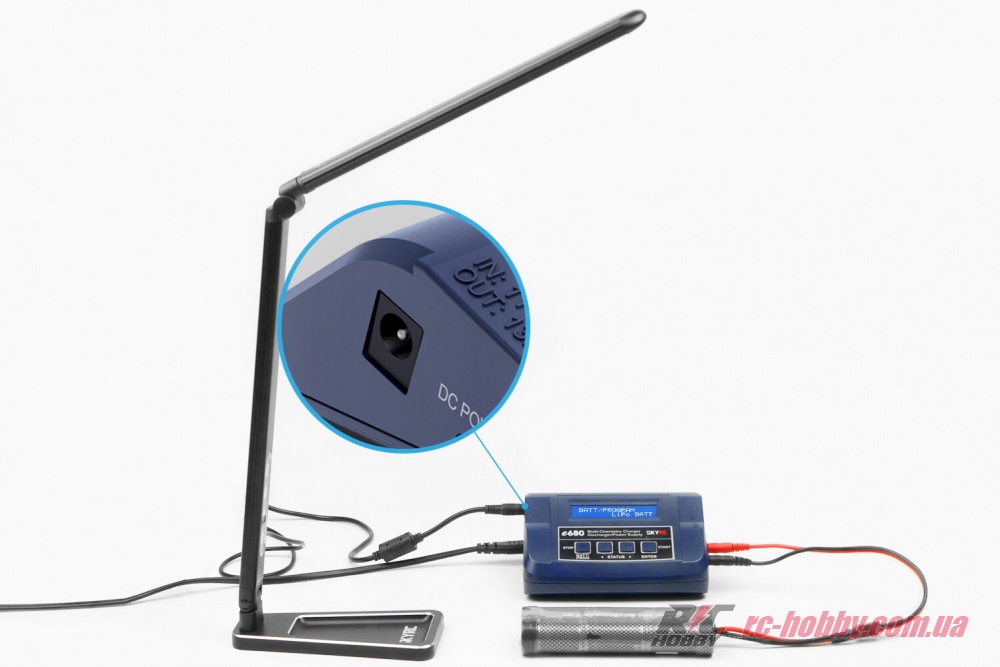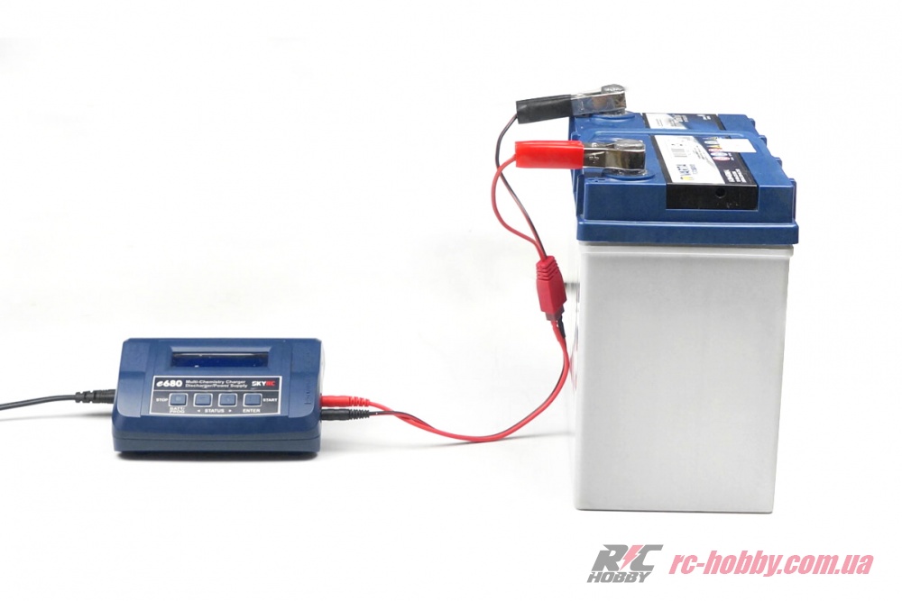 Зарядний пристрій SkyRC e680 живиться від мережі 220В, від автомобіля, або від акумулятора, що робить його універсальним приладом для використання в польових умовах.